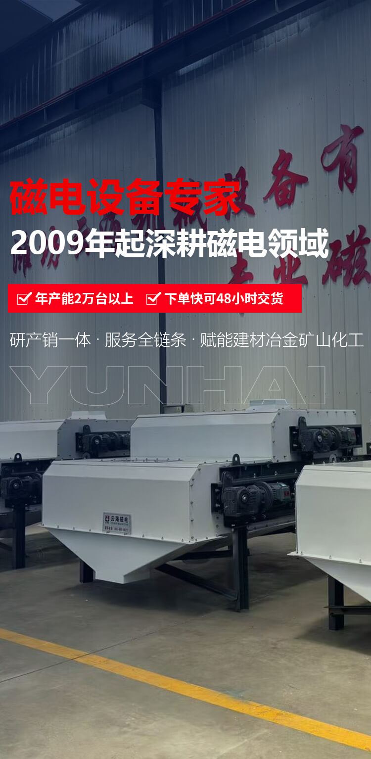 濰坊云海機械設備有限公司始建于2009年,是生產磁電機械設備的廠家。系生產建材、冶金、礦山、化工等行業微機自動化、檢測、控制專用設備的公司。主要產品工業自動化配料系統、電磁永磁除鐵器、永磁磁選機、電磁振動給料機、皮帶螺旋輸送機、電磁滾筒、破碎機、包裝機 、除塵器等系列產品。
